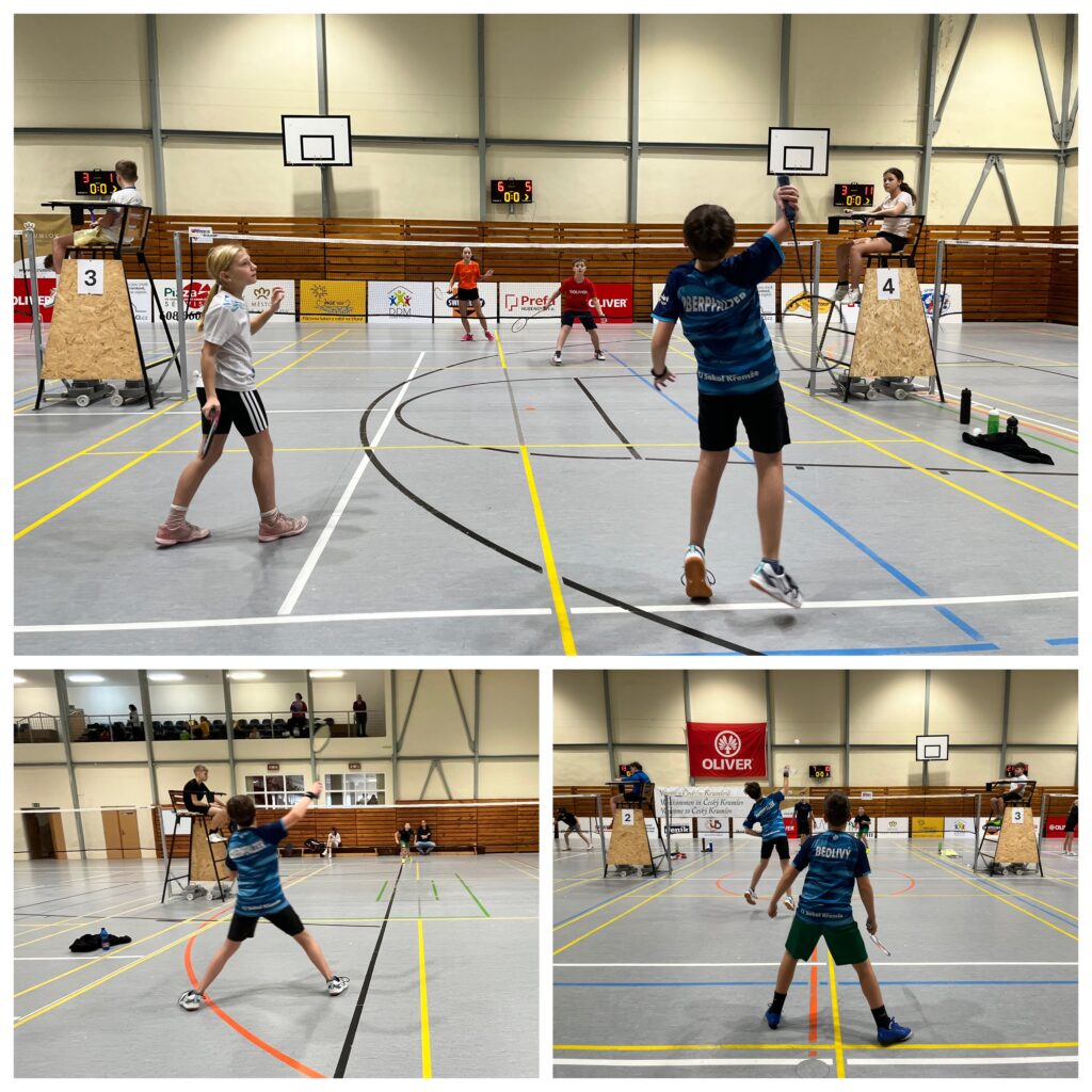 Jestli mohlo být ryze křemežské? Mohlo by – nestát na vedlejším kurtu proti Týnce Ema Pecková. Herně se jí už vyrovnáme, porazit ji ještě neumíme. Týnka ji sice v prvním setu díky trpělivé a přesné hře přehrála, ale v dalším průběhu už na celoplošnou hru neměla dost sil a na finále po výsledku 21–13, 14–21 a 6–21 nedosáhla. Nakonec ani Terezka se svým bombardónem na Emu ve finále nestačila…13–21 a 15–21 ukazuje, že tady ještě o kousek zaostáváme. Každopádně…bronzová a stříbrná…medaile čtvrtá a pátá!