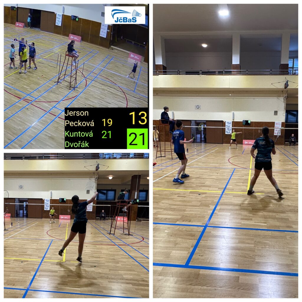 Na vedlejším kurtu se Barča s Vojtou Kašínem postavili proti vodňanským Gabriele Začkové a Tomu Zimovi, které zpočátku nechali možná až příliš moc hrát a první set dovedli ke zdárnému konci až díky závěrečnému šestibodovému trháku. Druhý naopak nezačali kdovíjak odvážně a za chvíli prohrávali 3-7. Potom si asi řekli, že není úplně fér dávat soupeři klamnou naději na vítězství, rychle otočili na 11-7 a zbytek zápasu si pohlídali na konečných 21-15 a 21-11.