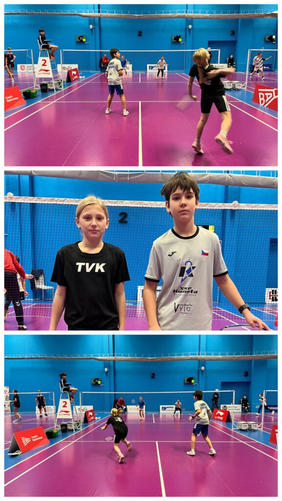 Protože se turnaj losoval už den předem, věděli jsme moc dobře, do čeho jdeme. Už po přihlášení jsme z volných hráčů vyzobli dva borce do mixů. Šli jsme do toho trochu naslepo, ale při poměru tří volných chlapců na sedm dívek nebyl čas ptát se, jak dlouho to kdo hraje. Terka tedy odehrála smíšenou čtyřhru s Ladislavem Vargou z SKP Kometa Brno, Týnka s Tadeášem Kowalczykem z Českého Těšína. A bylo třeba do toho šlápnout hned zkraje, protože soupeři nebyli z nejlehčích.