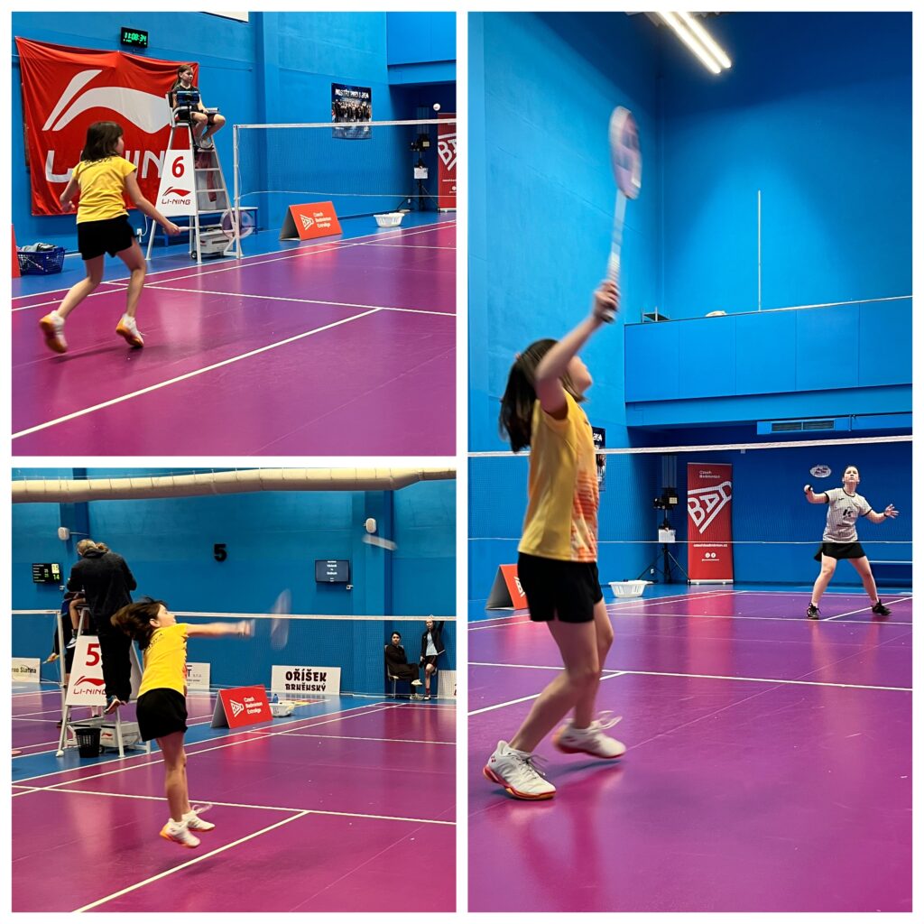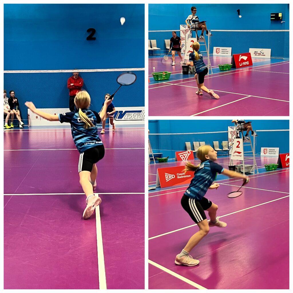 Na Terezku čekala ve dvouhře soupeřka z mixu. Na Lindě Voráčové byl od loňského zápasu na MČR U11 znát nemalý posun v pohybu a paleta jejích úderů je rovněž o poznání pestřejší, my jsme se naštěstí od té doby také zlepšili. Navíc Terezka mohla díky výškové převaze dát na odiv něco ze své razance, a tak šla po soustředěném výkonu 21–12 a 21–12 do čtvrtfinále.