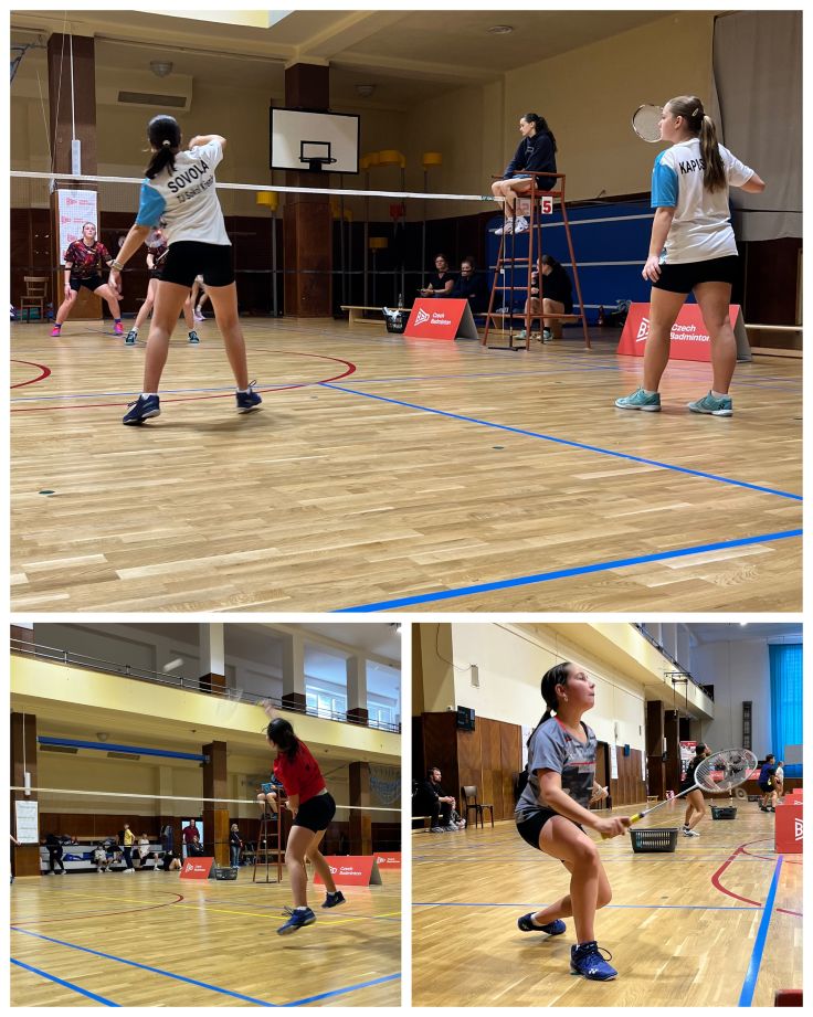 Opět potěšila čtyřhra, kde spolu s Amčou Kapustovou (Vodňany) předvedly koncentrákovanou sílu badmintonového enzymu, krumlovské Aničku Dvořákovou a Nikol Zuzákovou přehrály v hezkém tempu 21–13 a 21–12 a účastí v semifinále si tak zajistily jistou medaili. Rovnou řekněme, že bronzovou, protože o nějaké lepší se řeč nevedla. Proti Bětce Hrdličkové (Strakonice) a Míše Jersonové totiž umíme jen hrát. Nikoliv vyhrát, což je trochu čára přes rozpočet. Neuchýlit se v druhém setu k možná trochu zbytečnému vyhazování, mohl být výsledek ještě o něco hezčí, než nakonec celkem statečných 15–21 a 13–21. A kromě přijetí pocty za třetí flek hřálo navíc i vědomí, že herně jsme vítězkám zatopili minimálně stejně, jako poražené finalistky.