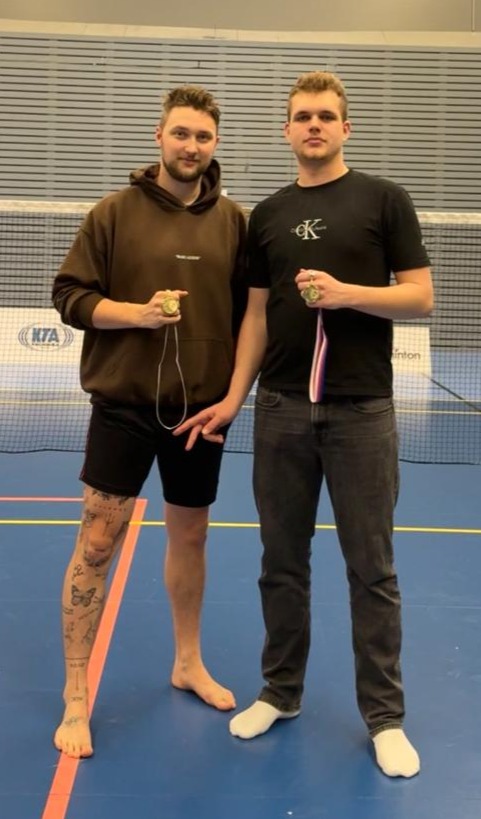 Bodů v dospěláckém žebříčku nemaje, museli Bery a Saša do šití pěkně zhurta, rovnou proti turnajovým dvojkám Ladislavu Fuksovi a Davidu Sklářovi z SK Hamr. Na úvod velmi těžká práce, výkon ovšem byl soustředěný a výsledek byl 21-15, 21-17, takže čtvrtfinále! V něm věkově poněkud nesourodá dvojice Vladimír Svoboda (SK Hamr, 2011) a Michal Haršanyi (TJ Slovan Vesec, 1974). Zatímco ten první ještě nebyl tak zkušený, druhý byl už „zkušený“ přece jen trochu moc na to, aby zvládli čelit Beryho kanónu a Sašově mravenčí práci na síti…když k tomu přičteme výhodu vzájemné herní kompatibility, po výsledku 21-12 a 21-16 se šli porvat o finále naši hoši. V něm se střetli s libereckými Františkem Beranem a Mirkem Šídou, nálada gradovala, forma naštěstí také a povedlo se vždycky zkraje setů rychle vybudovat náskok, který vedl ke konečnému skóre 21-14 a 21-11 a hlavně postupu do FINÁLE! Mostečtí protivníci Daniel Ickert a Jan Port zejména díky druhému jmenovanému disponovali zkušenostmi vpravdě olbřímími, jenže Bery měl na svého singlového přemožitele pořádnou žízeň, Saša se také nehodlal nechat zahanbit a…21-17, 21-16 a vítězství bylo na světě!